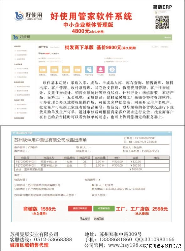 服装工厂店批发商客户下单一体专用版软件3600元/套(永久使用)