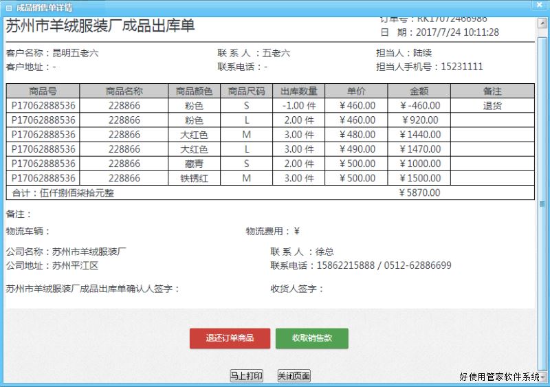 服装工厂店批发商客户下单一体专用版软件3600元/套(永久使用)