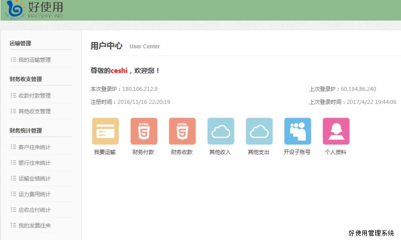 网络版第三方物流管理软件专用版点击测试登录 用户名:ceshi 密码:123456