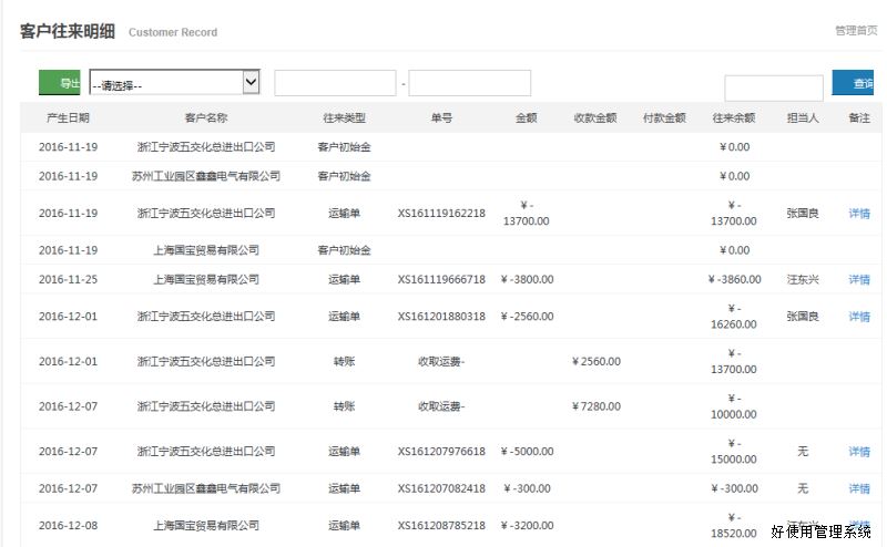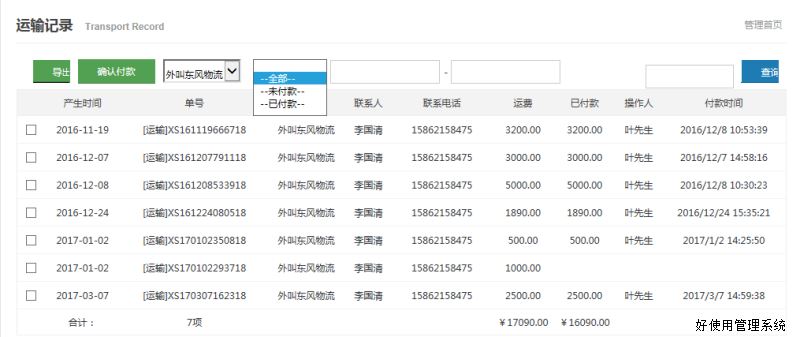 该款软件属简版ERP操作简单功能实用15分钟内就会使用,可添加管理员实行权限分配,只要做运输物流管理,收款、付款和发票统计操作就可以了,其他的运输业绩统计客户往来、银行往来、运力费用(包括每个车的物流费用)、应收应付、其他收入,其他支出等都糸统自动统计,在软件中查找所有的可用选择键及搜索功能,购买后可进行远程操作辅导。