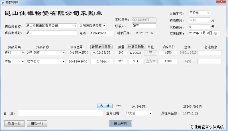 该款软件操作简单,功能实用,只要设定该货品的比重在入库时输入规格就能自动计算,也可输单件的重量或体积都能按你要求实现,出货