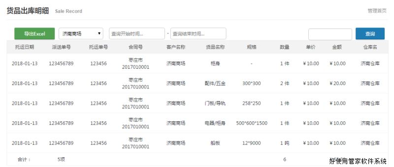 该款软件操作简单,功能实用,在入库、出货、及库存的环节上及时知晓该货品体积、单重及总重,也能体现入库时产生费用,货源的归属人非常清楚,